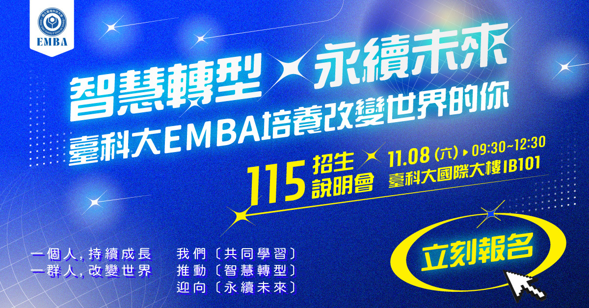 國立臺灣科技大學115學年度EMBA碩士在職專班招生資訊