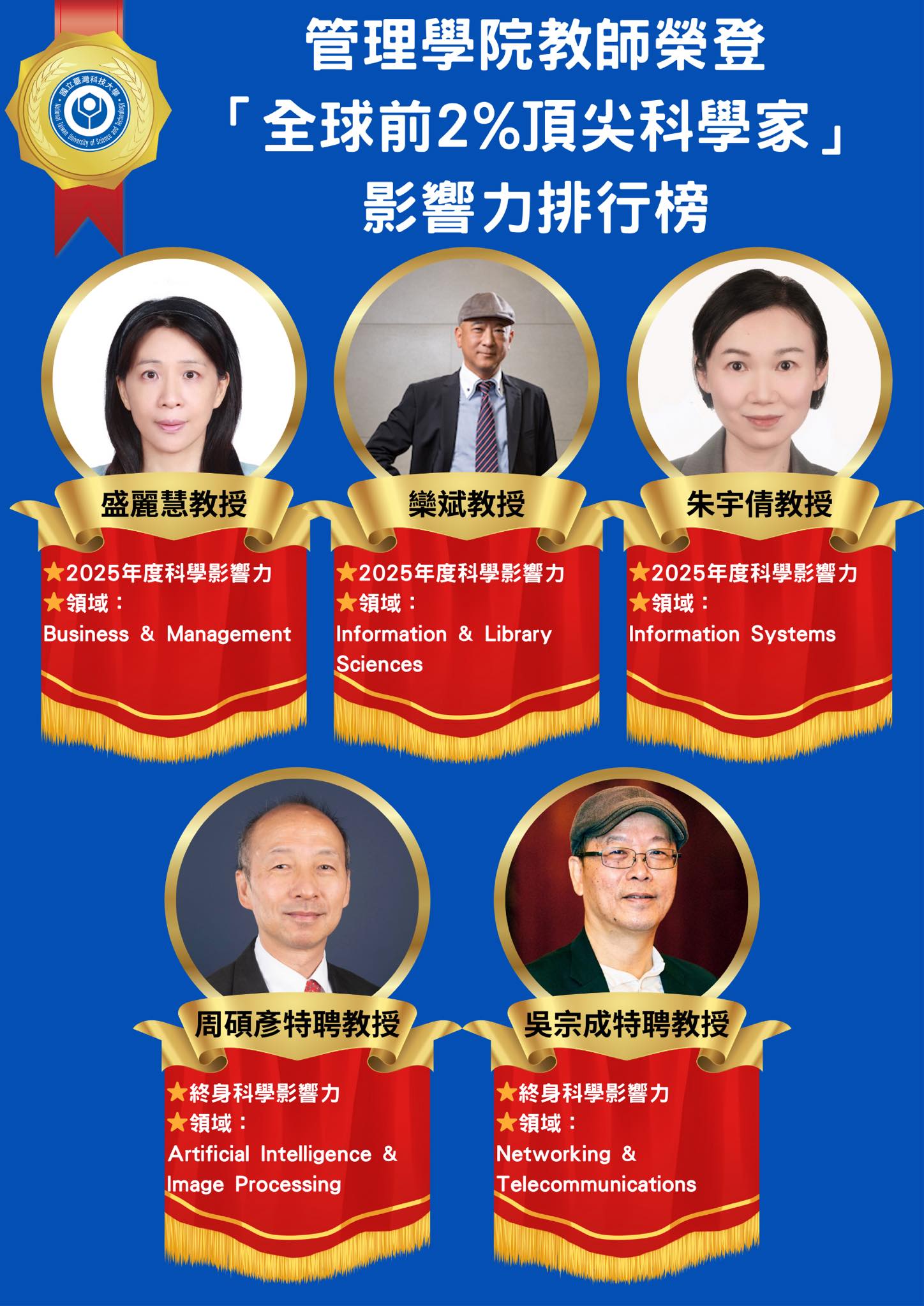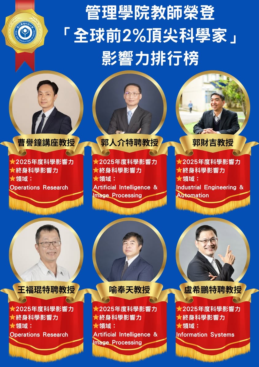 這份榮耀,不僅屬於入榜的學者,更象徵臺科大管理學院持續在國際舞台上發光發熱。